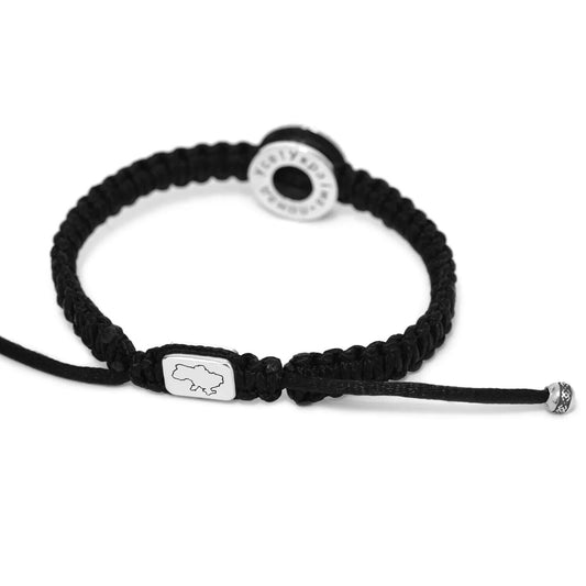 Bracelet - Silver 925 Trident Ukraine & Black Thread Тризуб України Браслет
