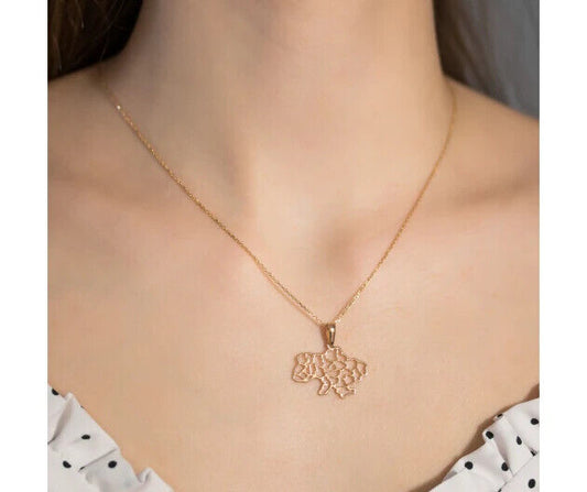 New Pendant Ukraine Map Necklace Gift Symbol Jewelry Charm 14k solid gold (585)