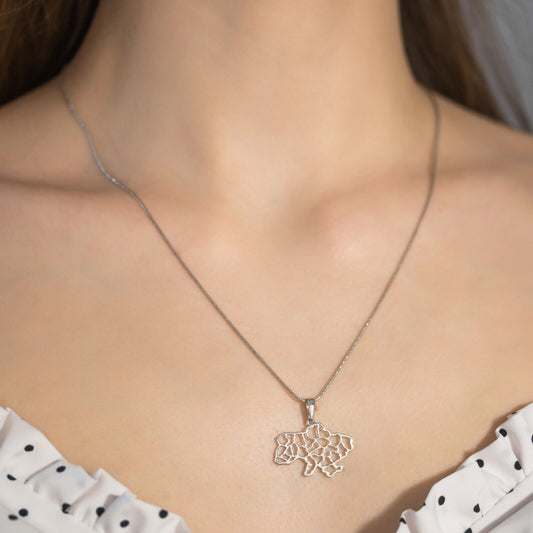 New Pendant Ukraine Map Necklace Gift Symbol Jewelry Charm 14k White Gold (585)