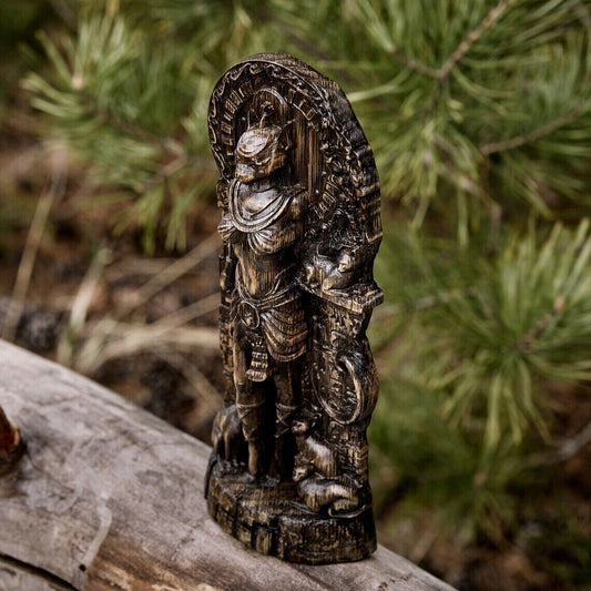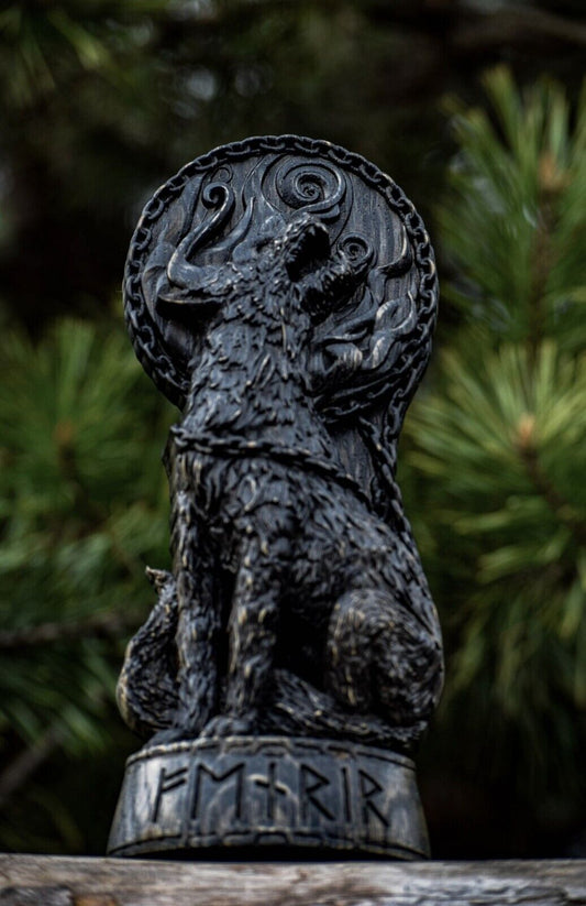 Fenrir Wolf Wooden altar statue Viking Nordic Pagan Decor Carved Figurine Gift