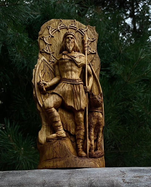 Exclusive statue - God Lugh Wood carved Figurine Wooden Artwork altar New Gift