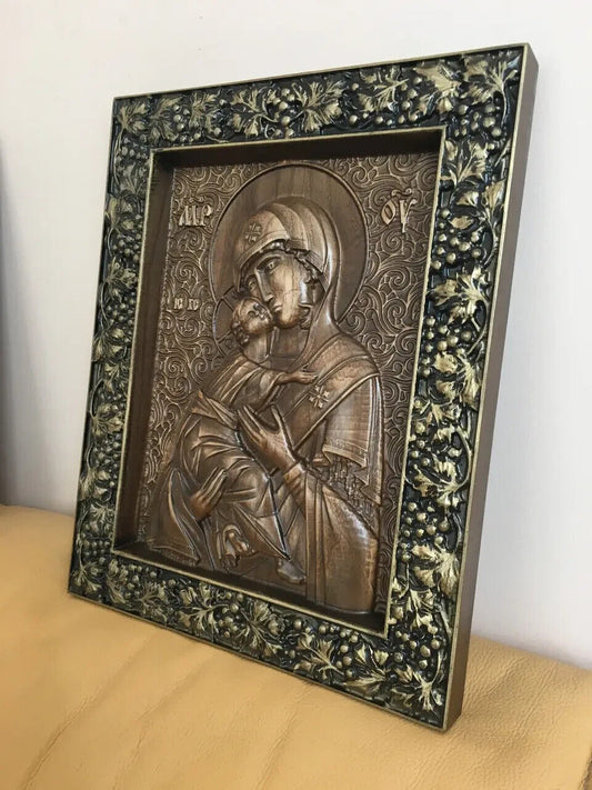 Icon Vladimir Mother God Wood Carving Picture 3D Orthodox Gift Panno Wall Decor
