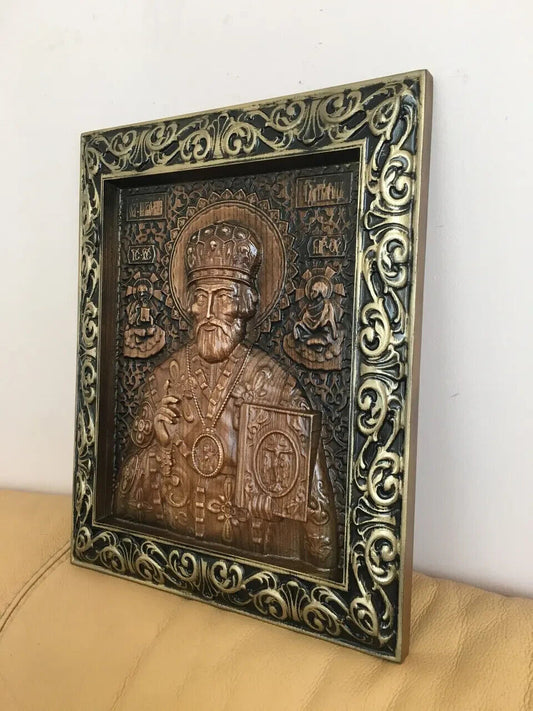 14" Icon of St. Nicholas Wood Carving Picture 3D Orthodox Gift Panno Wall Decor