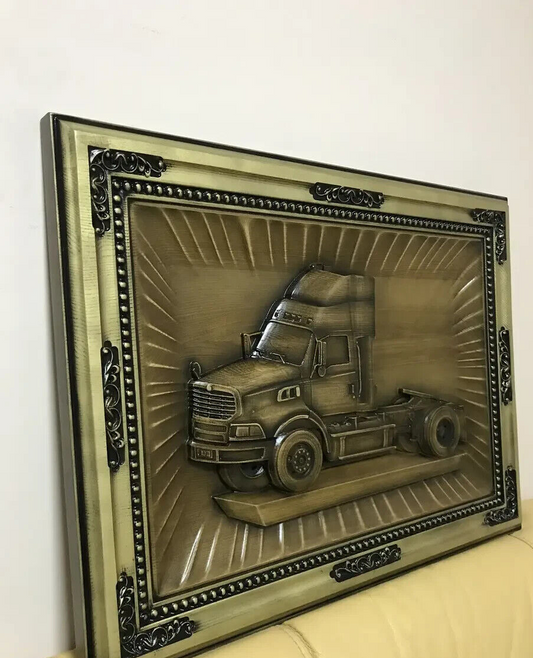 28" Truck Car Large Wood Carving Picture 3D Handmade Art Gift Panno Wall Decor