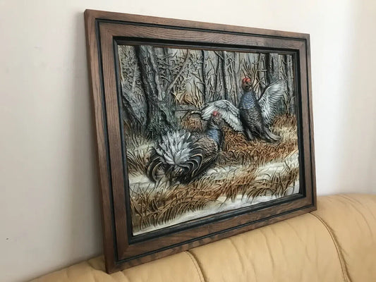 29" Capercaillie Large Wood Carving Picture 3D ArtWork Gift Panno Wall Decor