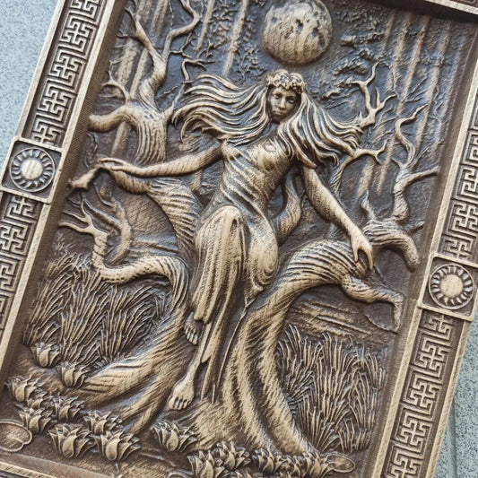 12" Goddes Slavic Mara Wood Carving Picture 3D Handmade Gift Panno Wall Decor