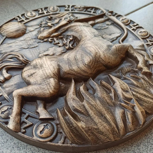 10" Sagittarius zodiac Wood Carving Picture 3D Handmade Gift Panno Wall Decor