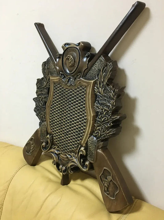 Hunting Shield Trophy Wood Carving Picture 3D Art Work Gift Panno Wall Decor