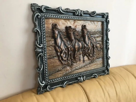 22" Horses Large Wood Carving Picture 3D Art Work Handmad Gift Panno Wall Decor