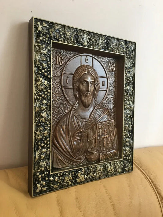 14" Icon Jesus Christ Wood Carving Picture 3D Orthodox Gift Panno Wall Decor