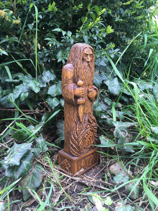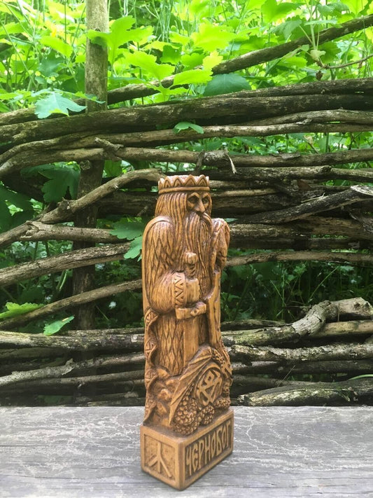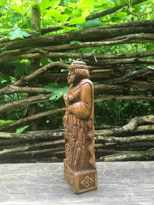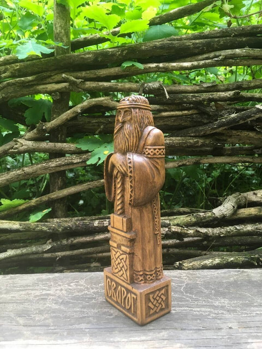 Svarog Statue Slavic God Wooden Carved Figure Wood Handmade Decor Height 10 in