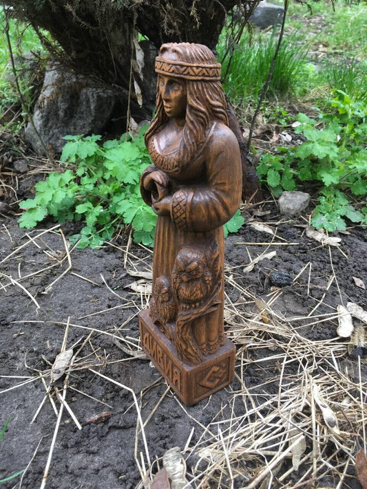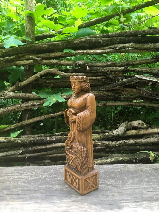 Lada Statue Slavic God Wooden Carved Figure Wood Handmade Decor Height 10 in