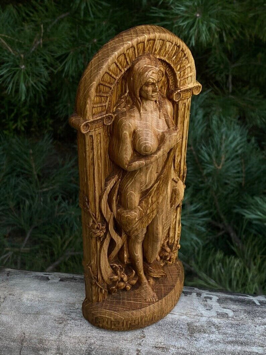 Ziva Statue Slavic God Wooden Carved Figure Wood Handmade Decor Dziva Zhiva 10in