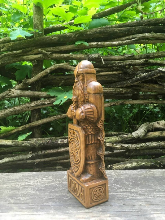 Perun Statue Slavic God Wooden Carved Figure Wood Handmade Decor Height 10 in