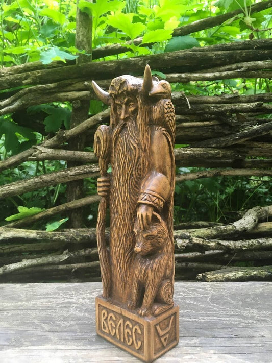 Veles Statue Slavic God Wooden Carved Figure Wood Handmade Decor Height 10in