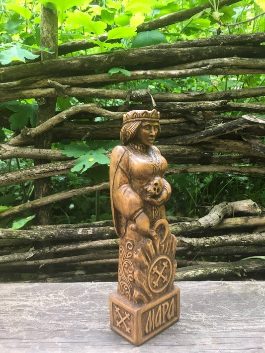 Mara Statue Slavic God Wooden Carved Figure Wood Handmade Decor Height 10 in