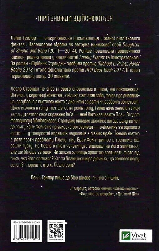 Book in Ukrainian - KIDS book - Книга Мрійник Стрендж Strange The Dreamer Лейні Тейлор