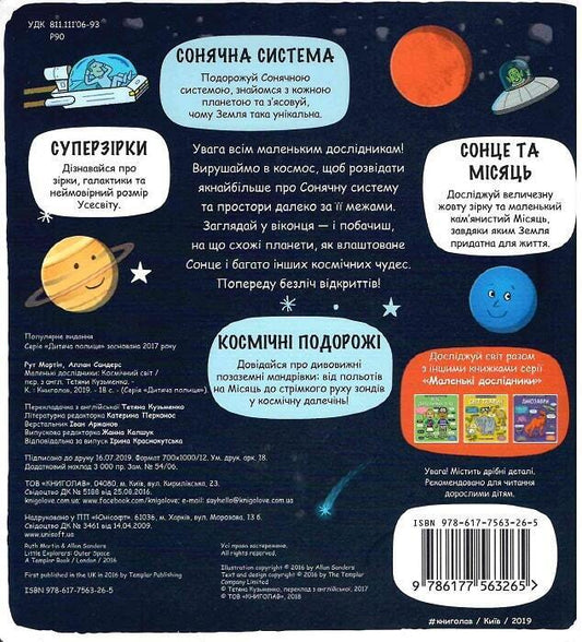 Book in Ukrainian - KIDS book - Книга Маленькі дослідники Космічний світ - Рут Мартін