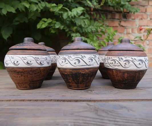 Baking Clay Pot w/ lid Stoneware Cookware Ceramic Honey pot Rustic baking dish