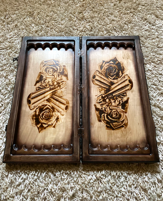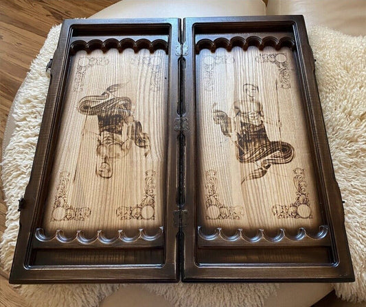 Exclusive Backgammon "Lady & Gun" – A Handcrafted Tribute to the Spirit of the Wild West (58x28cm / 22.8x11 inches)