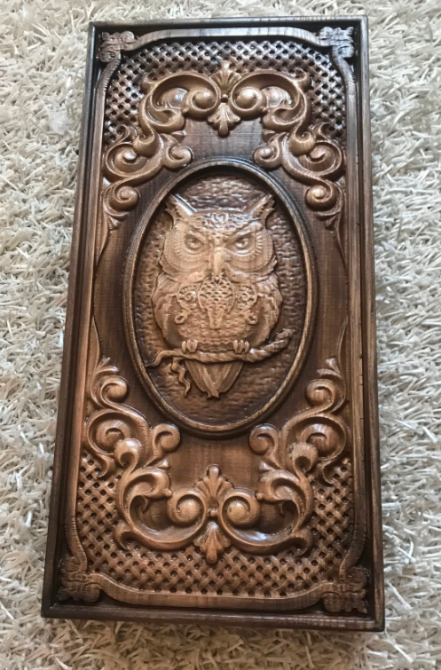 Artwork Backgammon "Owl" – Handcrafted Luxury Wooden Backgammon Set (58x28cm / 22.8x11 inches)