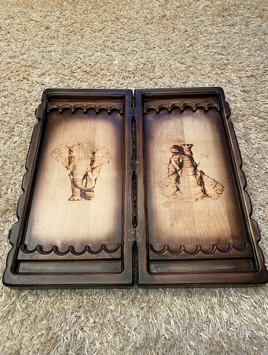 Unique Backgammon "Elephant" – A Handcrafted Wooden Tribute to Strength, Wisdom, and Strategy (58x28cm / 22.8x11 inches)