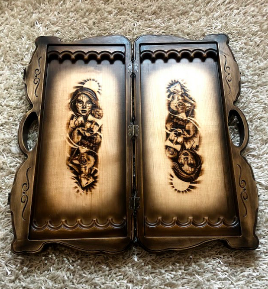 Artwork Backgammon "Dragon Handle" – Handcrafted Wooden Backgammon Set (58x28cm / 22.8x11 inches)
