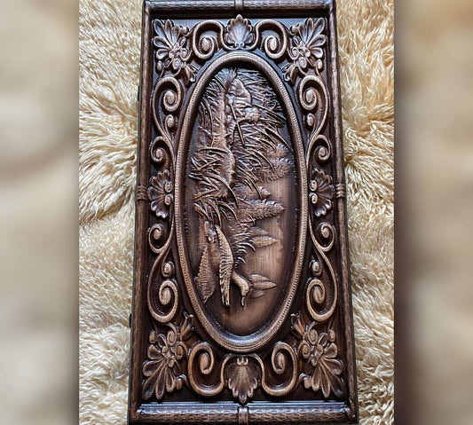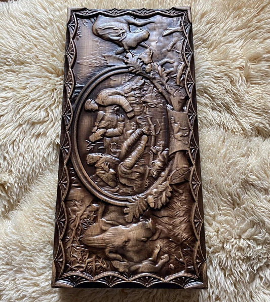 Artwork Backgammon "Hunting" – Handcrafted Wooden Backgammon Set (58x28cm / 22.8x11 inches)