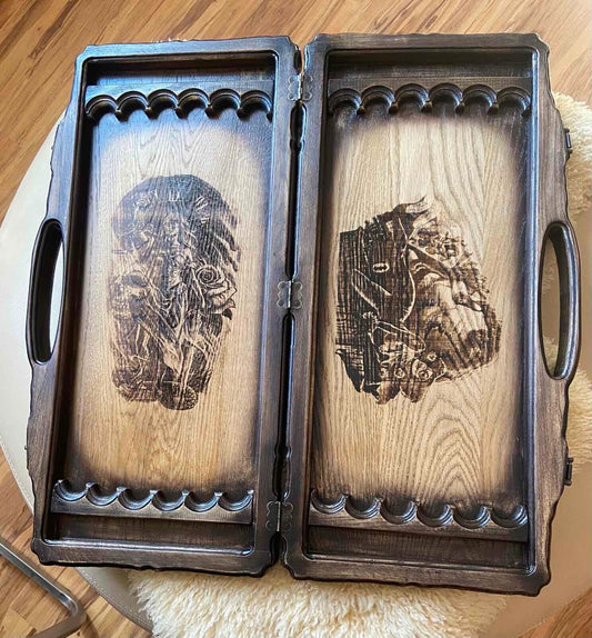 Artwork Backgammon "Lock, Stock, and Two Smoking Barrels" – Handcrafted Wooden Backgammon Set (58x28cm / 22.8x11 inches)