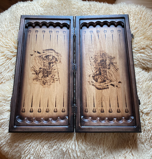 Artwork Backgammon "Knight Warrior Gladiator" – Handcrafted Wooden Backgammon Set (58x28cm / 22.8x11 inches)