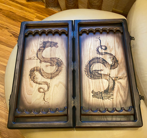 Unique Chess & Backgammon "Dragon" – A Handcrafted Wooden Tribute to Myth and Strategy (58x28cm / 22.8x11 inches)