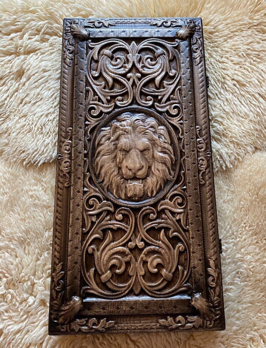 Artwork Backgammon "King Lion" – Handcrafted Wooden Backgammon Set (58x28cm / 22.8x11 inches)