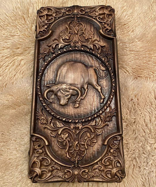 Artwork Backgammon "Taurus" Animal – Handcrafted Wooden Backgammon Set for Timeless Elegance (58x28cm / 22.8x11 inches)