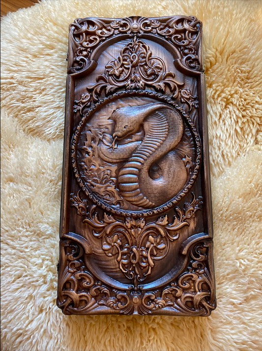 Artwork Backgammon "Snake Cobra" – Handcrafted Handmade Wooden Backgammon Set (58x28cm / 22.8x11 inches)