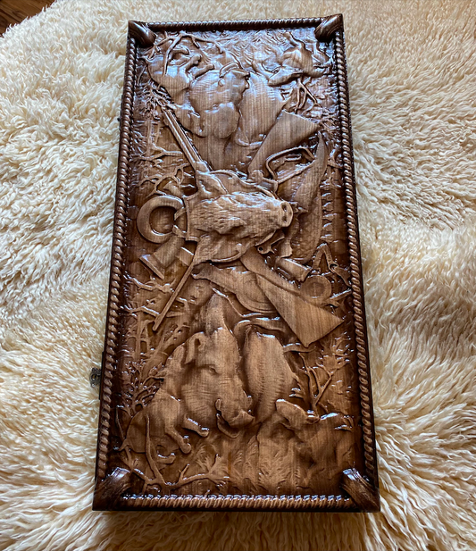 Artwork Backgammon "Animal & Hunting" – Luxurious Handcrafted Wooden Backgammon Set (58x28cm / 22.8x11 inches)