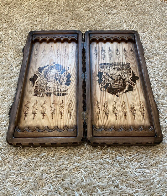Artwork Backgammon "Colosseum Gladiator" – Handcrafted Wooden Nardy (58x28cm / 22.8x11 inches)