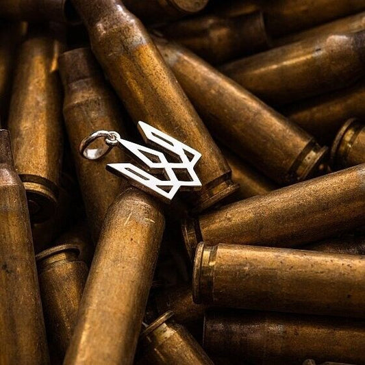 Pendant Ukrainian Trident Tryzub Ukraine Necklace Jewelry 14k White gold (585)