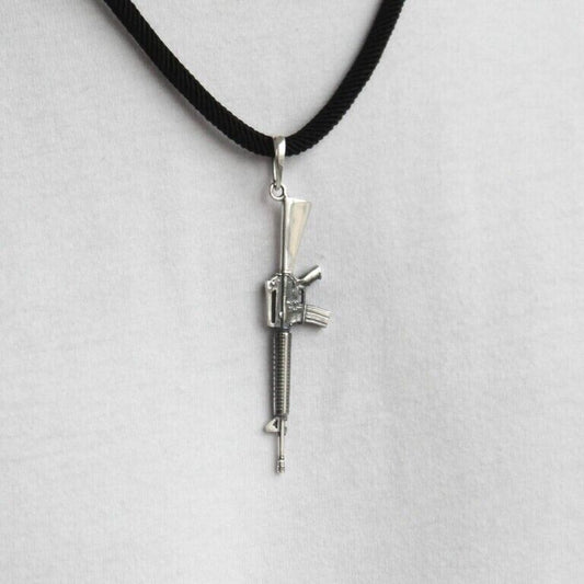 Machine Gun M16 Silver 925 Pendant Necklace Military Excellent Charm