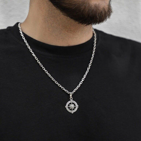 New Amulet Compass Silver 925 Pendant Jewelry Necklace