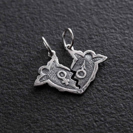 Pendant Heart Two Parts For Two Lovers Necklace Jewelry Silver 925 - I love you