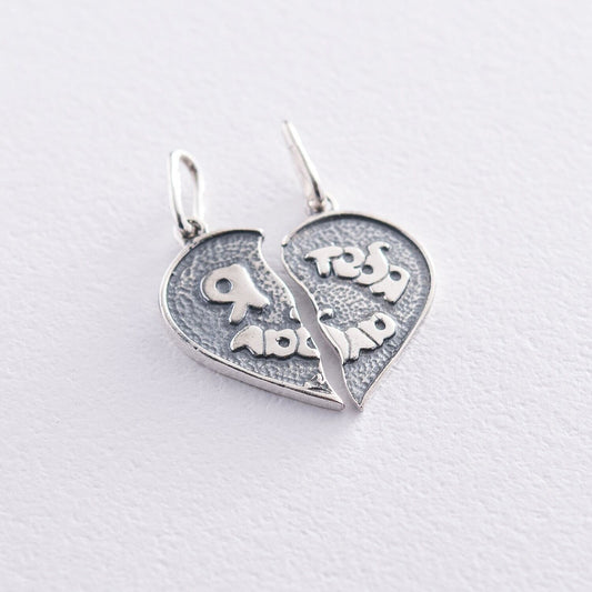 Pendant Heart Two Part For Two Lovers Necklace Jewelry Silver 925 - I love you