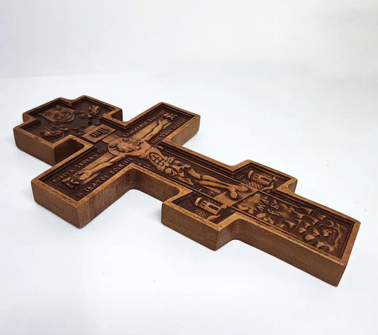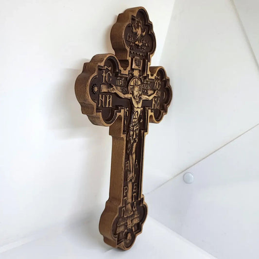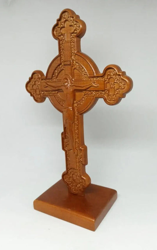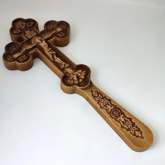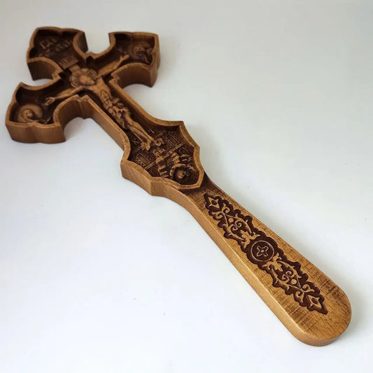 12" Wooden Cross Orthodox Carved Crucifix Jesus Christ Large Hand Altar Gift