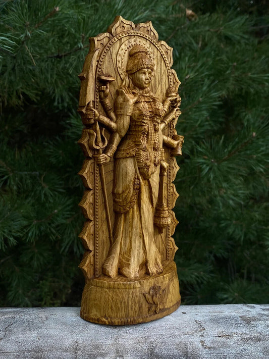 Statue of Durga, Indian, Hindu goddess Wood Carved Figurine Sculpture New Gift