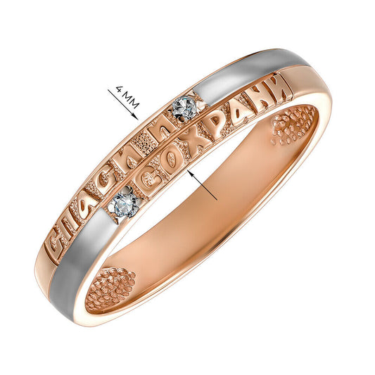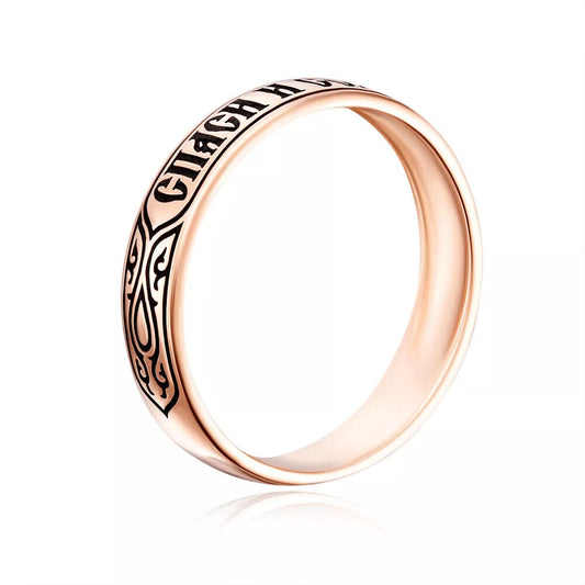 Ring Protective Спаси и сохрани Wedding Men Women Russian Jewelry 14k gold (585)