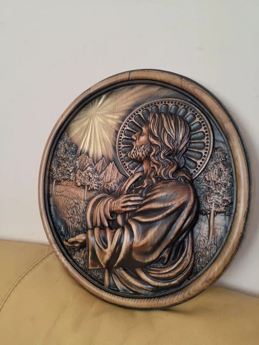 Icon Jesus Christ Prayer Wood Carving Picture 3D Orthodox Gift Panno Wall Decor