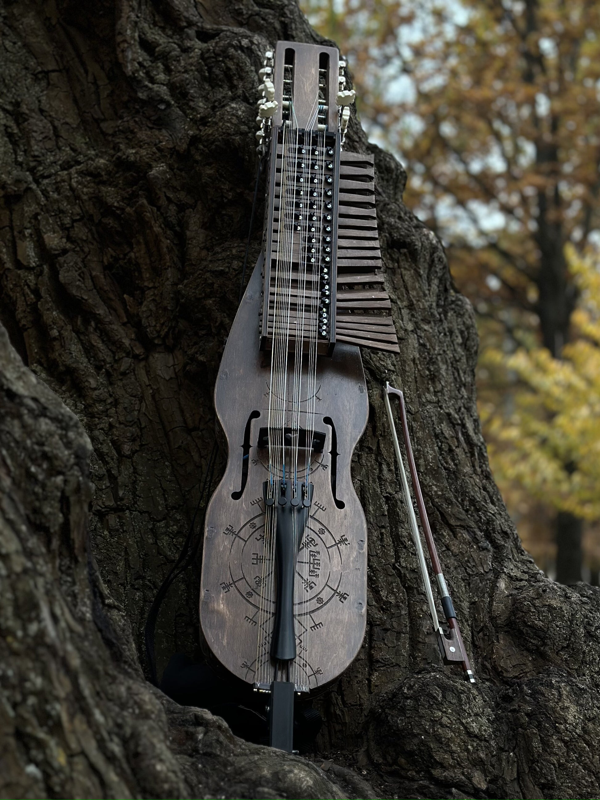 Swedish Nyckelharpa. 16 strings. In general, it allows you to get the sound of both a low cello and a high violin, and the resonant strings make the sound softer and provide an accompaniment that is not available in other instruments.