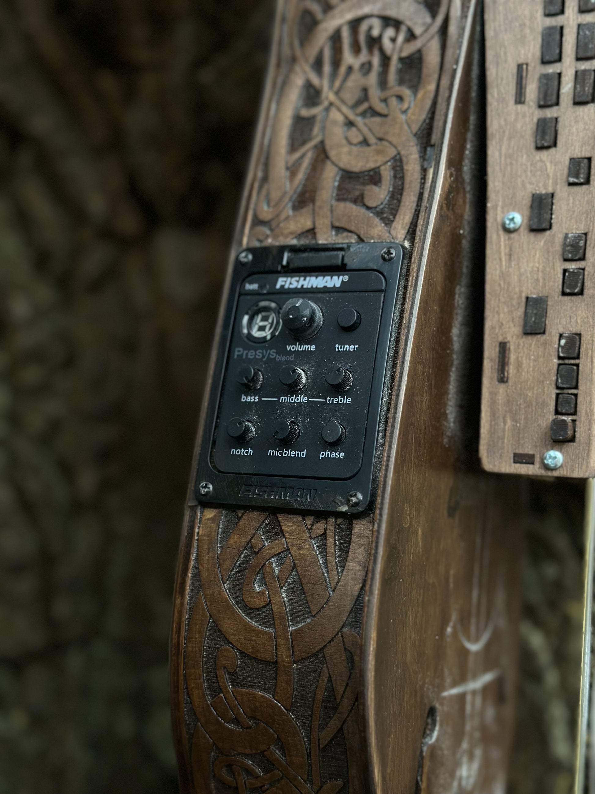 First Electric-Acoustic Nyckelharpa that you can find. You can play as the original nyckelharpa without an amp or use an amp because it has a pickup. Sounds great!